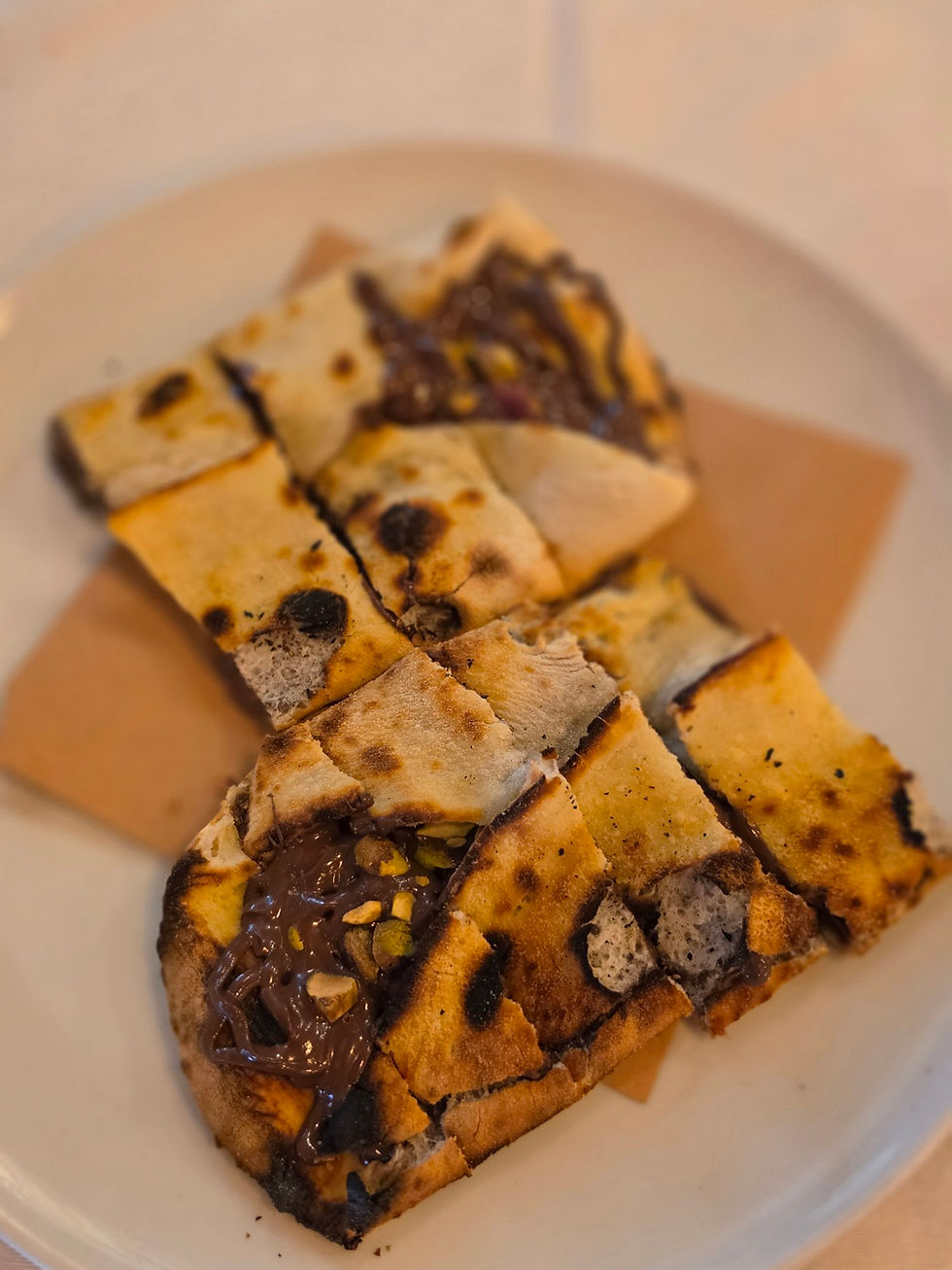 Para a sobremesa, o Piquenique Nuttelina traz um toque mais descontraído ao guia de onde comer em São Paulo: massa de pizza recheada com creme de avelã sem açúcar e pistache, oferecendo uma combinação equilibrada entre crocância e suavidade.
